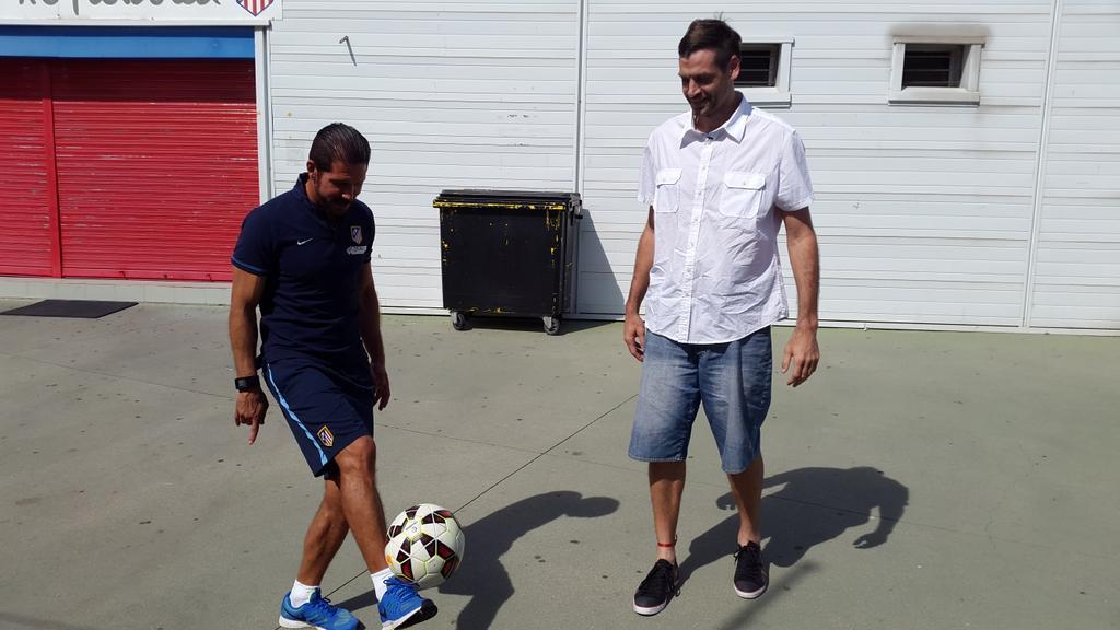 I due hanno avuto un intensa chiacchierata,per poi divertirsi tra passaggi e palleggi;insomma,due grandi,Simeone però,in un altro senso.